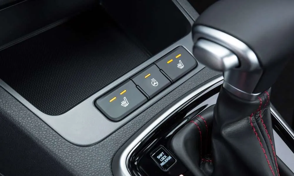 - Селектор трансмиссии и рулевое колесо с красной прострочкой