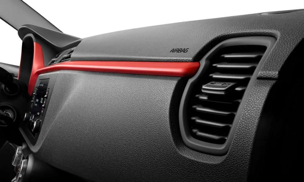 - Сиденья с отделкой тканью Style и красной прострочкой